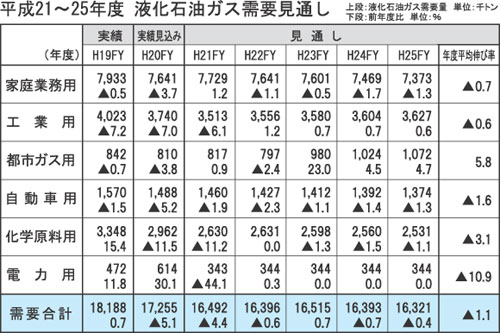 | 平成21〜25年度LPガス需要見通し 21年度は1700万d割れに 家業用が需要減 |