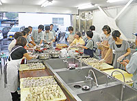 ハリマホームガス(兵庫県相生市、中谷更一社長)は9日、市消防本部主催の消防フェスタ2009に協力し、本社に隣接した「キッチンスタジオハリマ」で災害時を想定した炊き出し訓練を実施した。同社は、昨年4月に相生市と災害対応用支援機材に関する協定書を締結していることから、今回、消防本部から同フェスタへの参加要請を受けて協力したもの。 キッチンスタジオハリマは、災害時で炊き出しが行えるように、器も含めて機材を完備しており、今回は災害対策用「スーパーかまど」を用いて一度に米20`を炊き上げたほか、5升の業務用炊飯器2台で、合計30`分を炊飯した。 炊き出し訓練は、同社社員20人で行い、約1時間30分かけて、炊飯から、おにぎり約500個を握って、雨の中、同フェスタ会場のポート公園まで搬送した。(詳細はプロパン産業新聞2009年8月18日付で) |