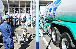 函館地区訓練は、執行役員生活エネルギー関連事業部長の石山孝司氏が本部長として指揮を取った。訓練は釧路沖を震源とする大規模地震を想定。同社が開発した世界初の「100kW級LPガス移動電源車」1台が出動し、LPガスと非常用電力の供給に万全を期すなか、設備に損傷のなかった函館LPG基地からの移動電源車出動やLPGローリ、容器への充填、ローリの緊急ルート確認等の訓練を行った。 (詳細はプロパン産業新聞2016年10月25日付で) | ||
