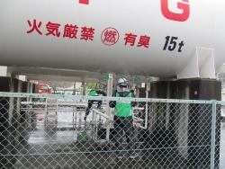 コロナ禍での事故対策を想定 富山県高圧ガス地域防災協議会(赤井一隆会長)は8日、富山市の富山県広域消防防災センターで令和2年度高圧ガス移動防災訓練を実施。訓練は新型コロナウイルス感染防止対策のもと参加者はマスクを着用して実施し、液化アンモニアタンクローリー事故による漏えい消火訓練、エアゾールスプレーおよびモノシランガス燃焼実験、LPガス配送車と普通自動車による事故想定訓練が行われた。 (詳細はプロパン産業新聞2020年10月20日付で) | ||