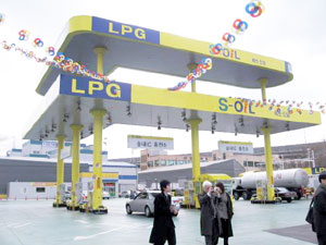| 今年2月末現在、LPG車が207万台普及し、今なお増加している隣国・韓国では、LPGスタンドも厳しい競争環境に置かれている。仁川市にある「S―オイルLPGスタンド」=写真=は、2500坪の広大な敷地に、カラフルなキャノピーを構え、顧客の獲得に力を入れている。「55万台体制」の構築を目指す我が国でも、近未来にはこうした光景に出合えることだろう。(詳細はプロパン産業新聞2007年3月20日付で) | ![]() |